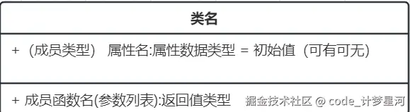 属性:可见性 成员名称 : 数据类型 = 可有可无的默认值
