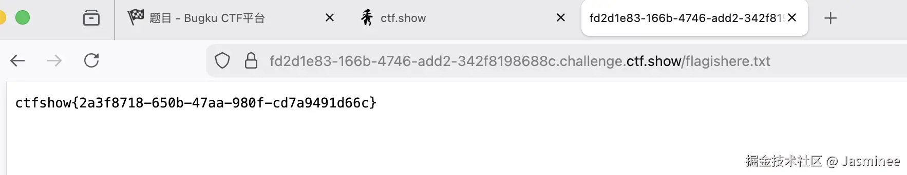 - 在浏览器地址栏里,把当前的 robots.txt 替换成 /flagishere.txt,完整地址就是: