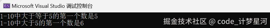 cout << "1-10中大于等于5的第一个数是" << arr[i] << endl;
