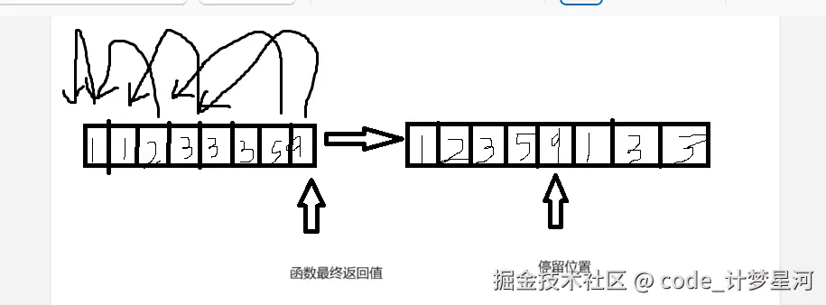这个函数似乎只起到了移动元素的作用,数组内部其实还是有重复元素的,这样看起来是不是有点自欺欺人呢?在这里博主提供两种真正实现去重的方法,一种针对迭代器法,一种针对指针法。