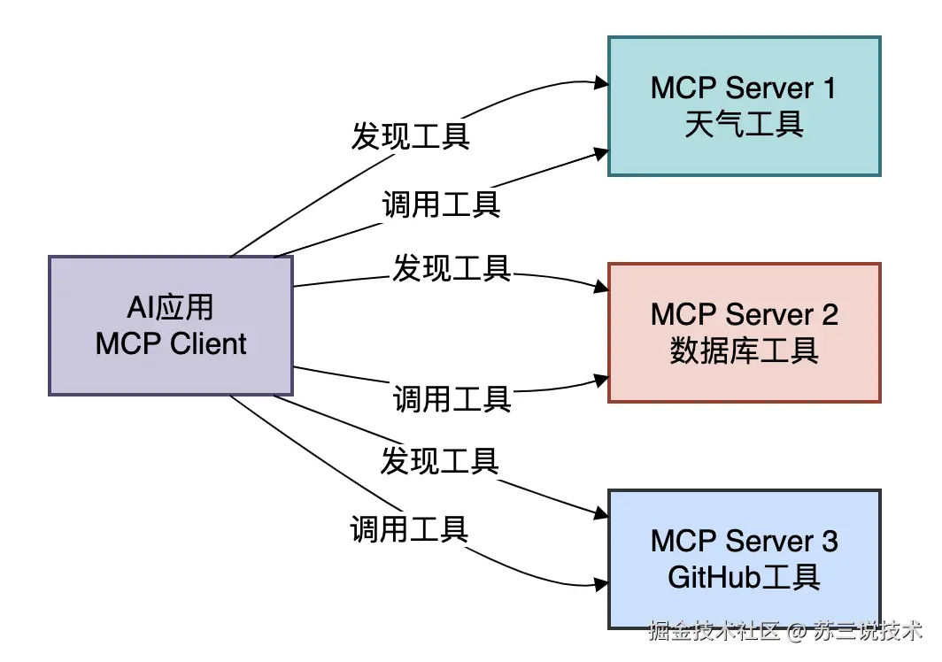 MCP是Anthropic提出的一个标准化协议,它定义了一套统一的接口,让AI模型可以像USB设备一样动态发现和调用工具。
