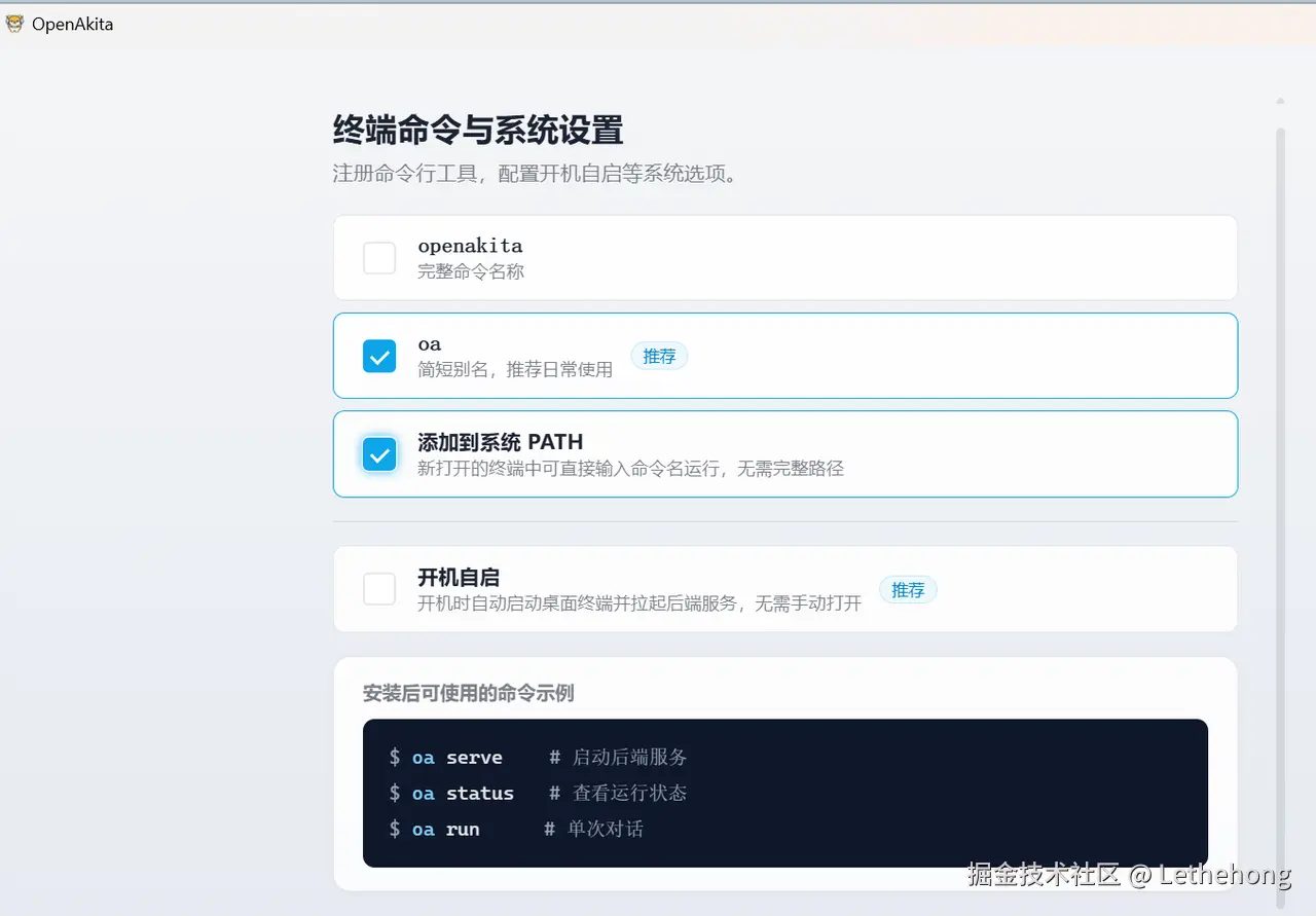 OpenAkita:图形化向导非常完善,真正可以做到“5 分钟上手,全程不敲命令”。
