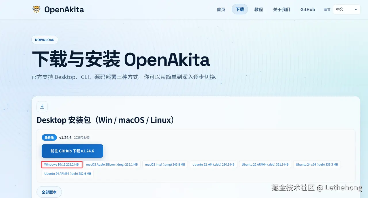 点击访问 OpenAkita 下载页面