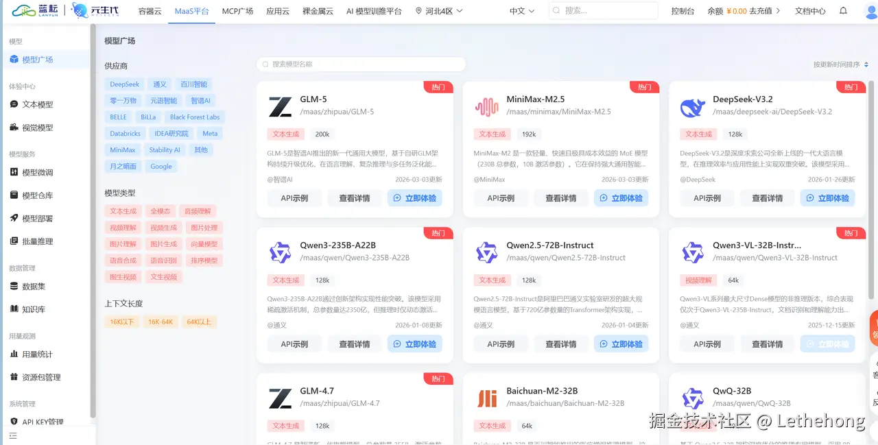 登录**蓝耘元生代**智算云平台