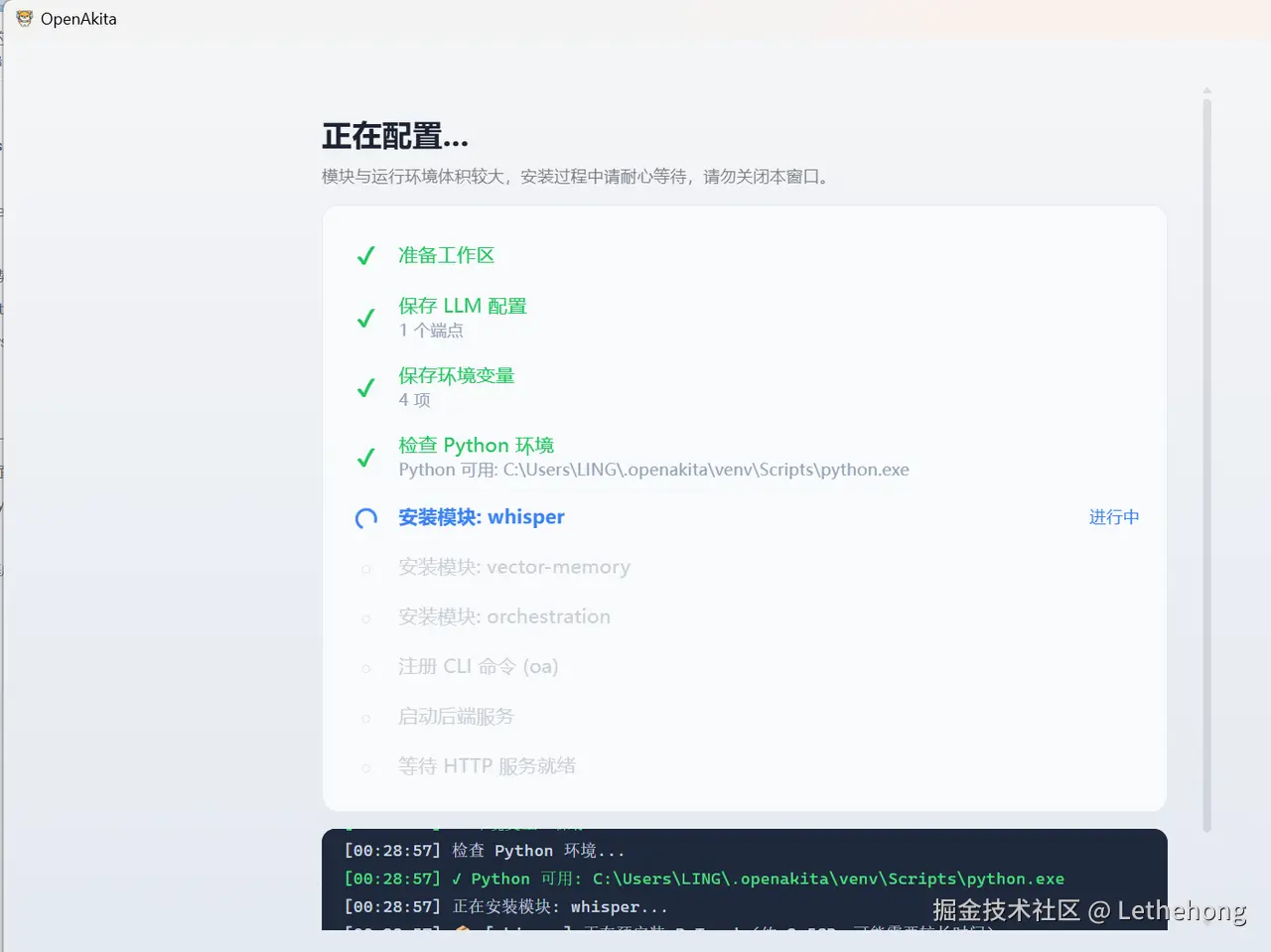 然后等待 OpenAkita 自动下载并安装对应依赖和技能包。