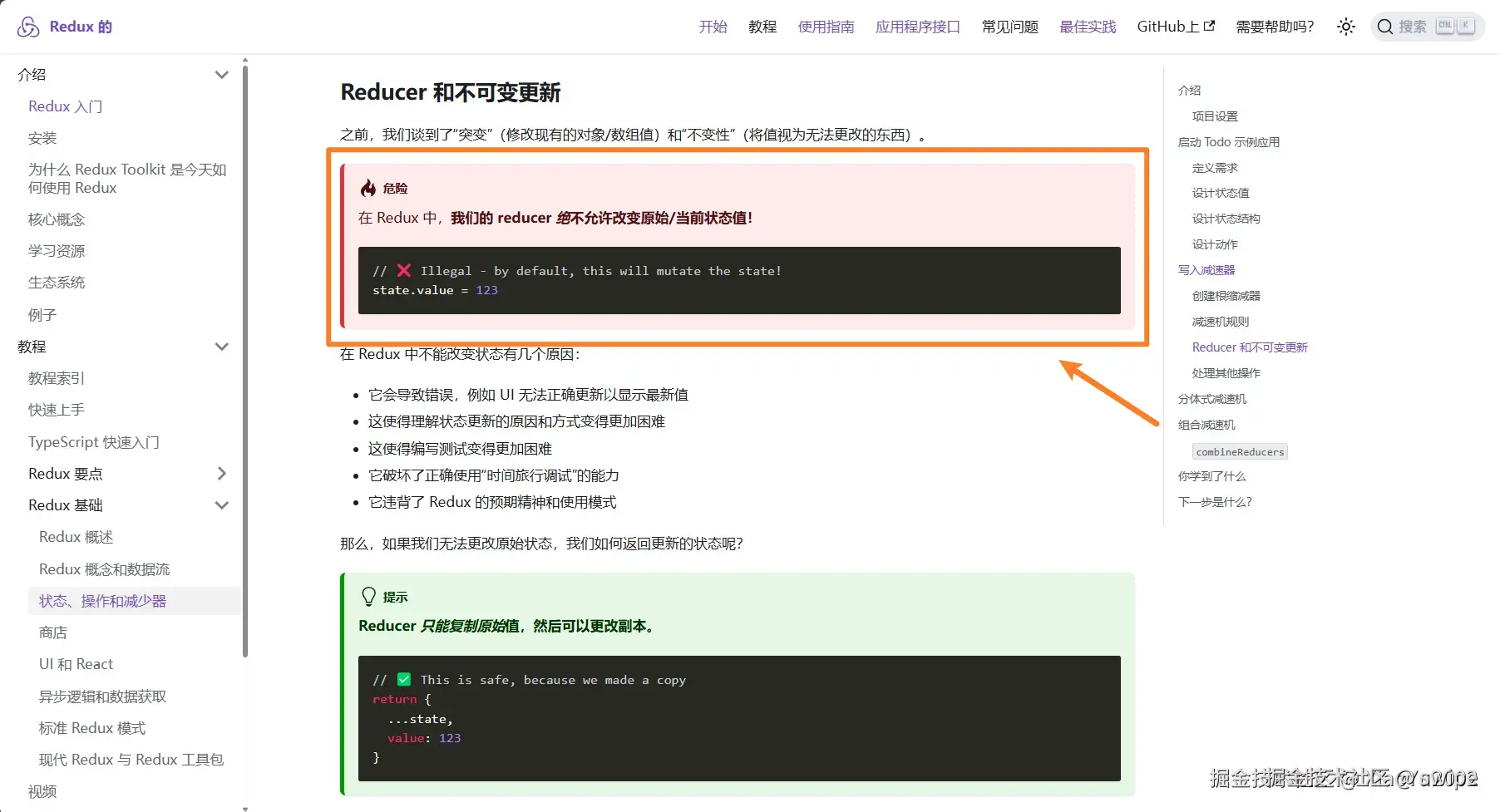 下图展示了 Redux 官方文档对数据不可变性的强调:
