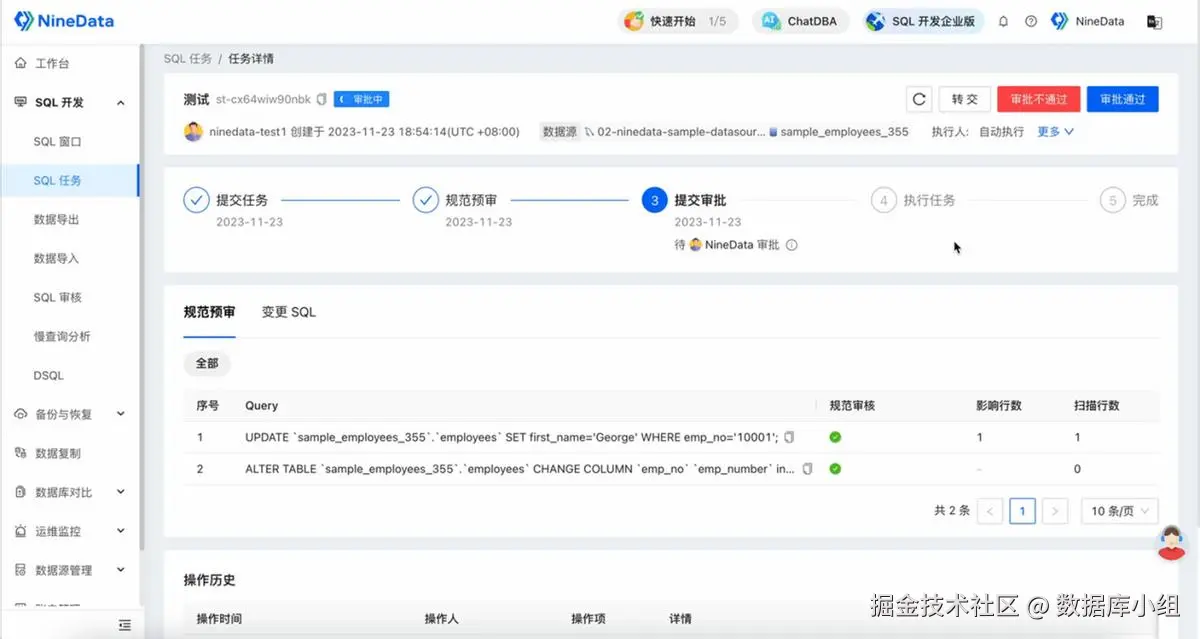 NineData 数据变更审批功能,解决的就是这件事。
