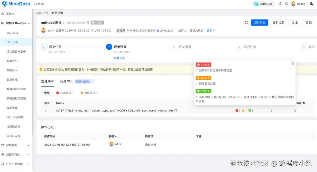 NineData 数据变更审批:把生产变更做成“走流程”,但不拖慢效率