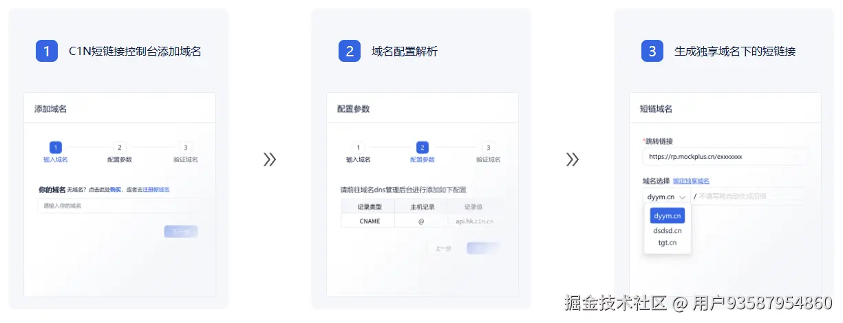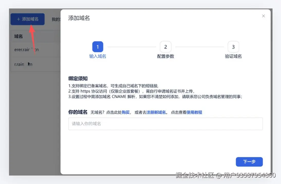 域名DNS解析添加成功后,再次回到C1N短链接平台,点击下一步,进行域名验证,验证通过后,即域名绑定成功。