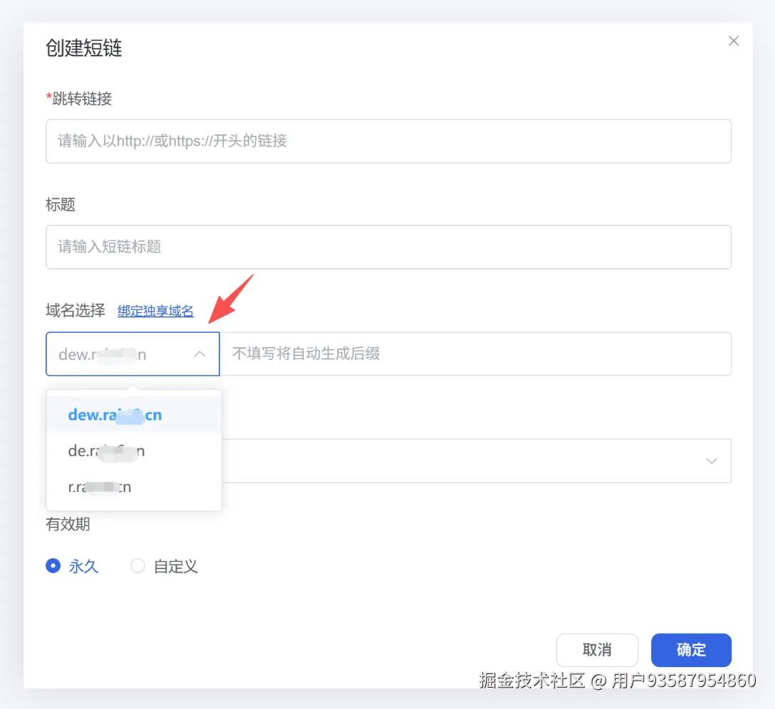 即可输入你想要缩短的长连接,同时选择您刚刚绑定的品牌域名。点击确定,一个自有域名的短链接就创建好了。