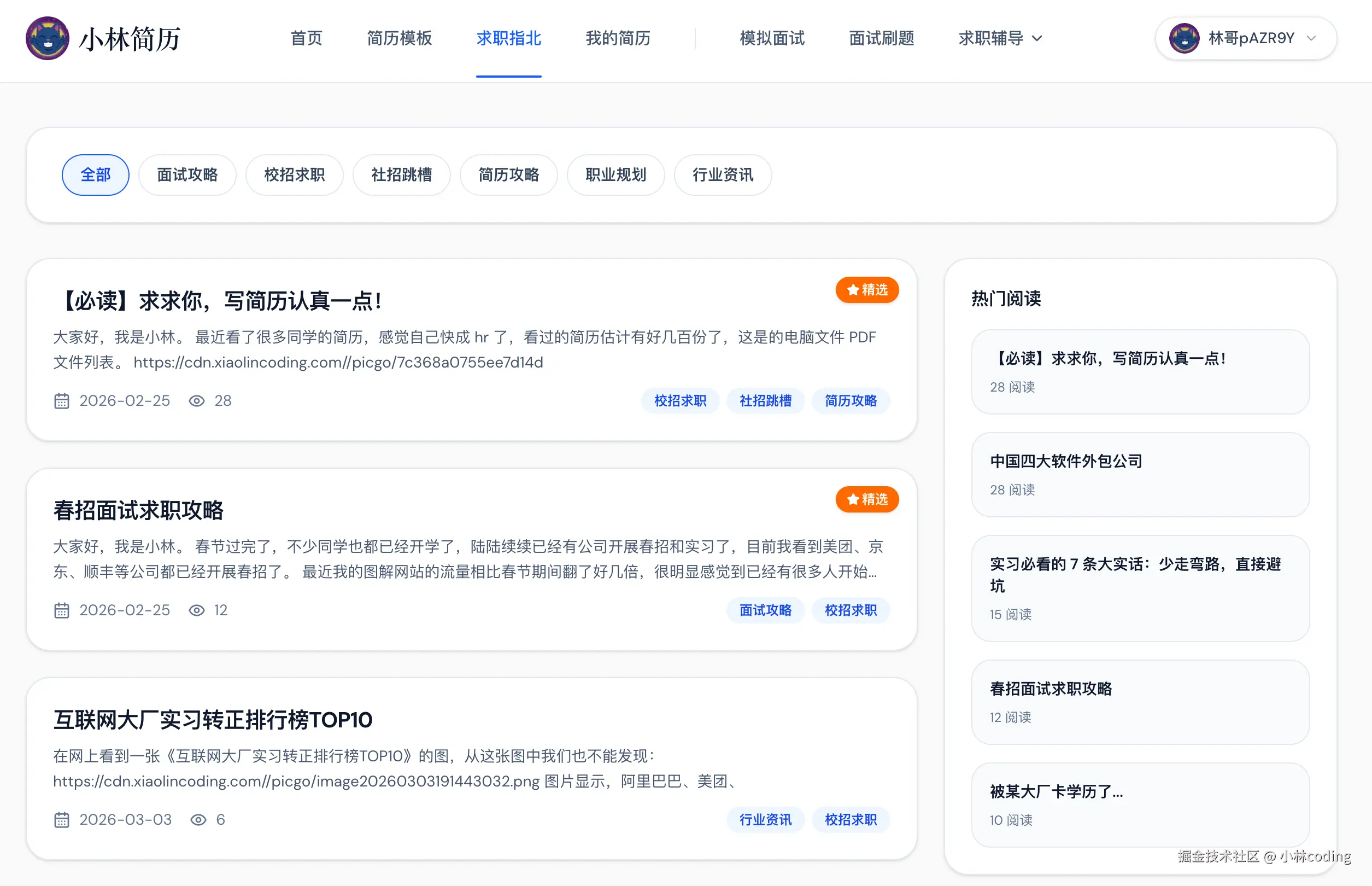 大家不仅能用网站写出高颜值的简历,还能顺手把这些经验贴给刷了,主打一个一站式解决求职焦虑,帮你最大程度抹平求职信息差!
