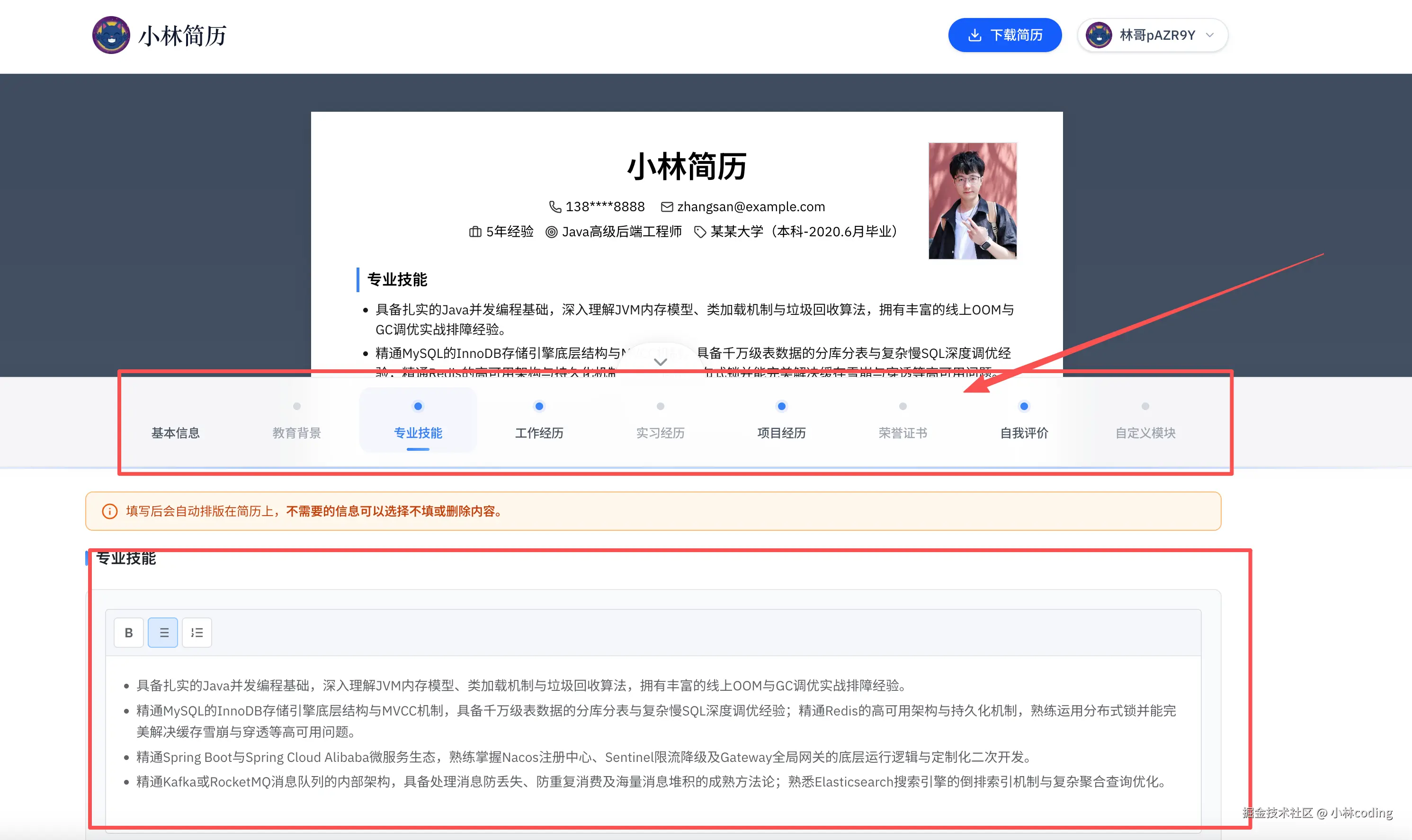 你问我怎么在「小林简历」网站制作一份简历?