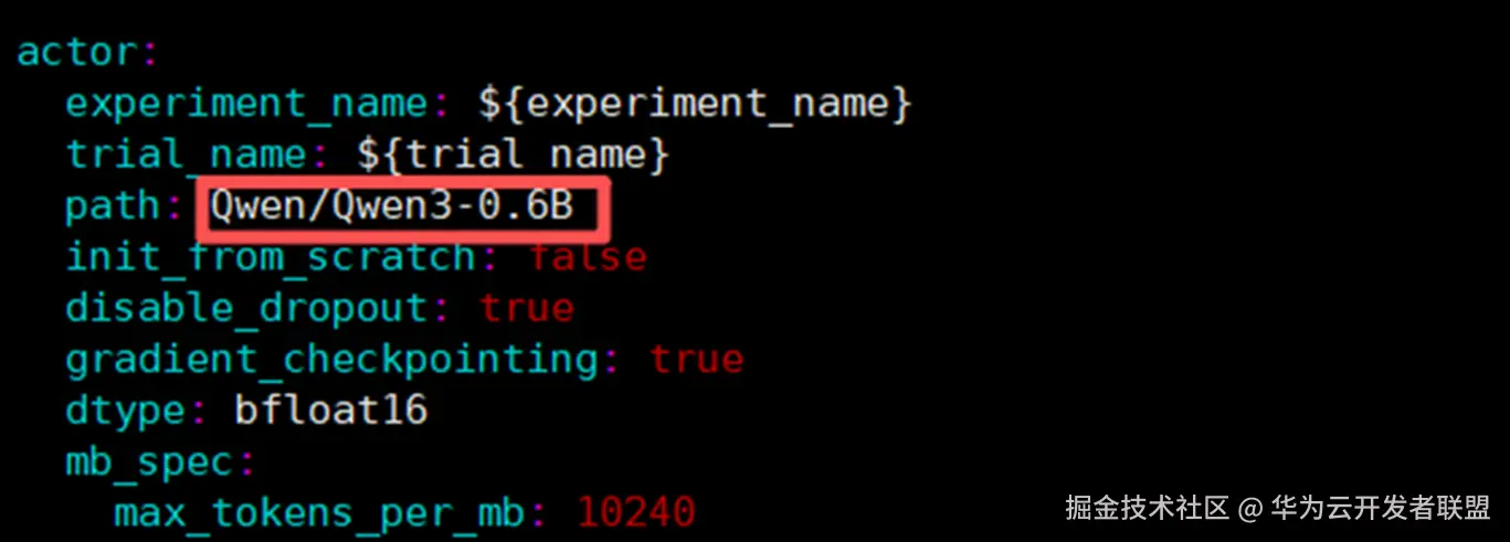 修改配置文件gsm8k_grpo_npu.yaml将模型配置为Qwen3-0.6B模型:
