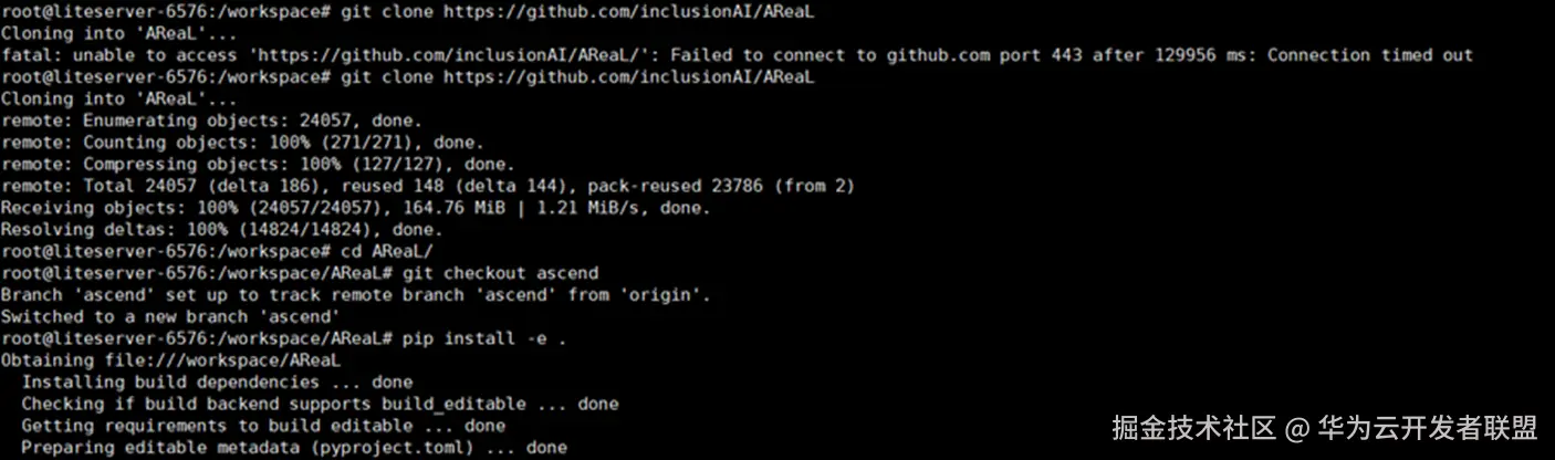 Step 3:进入容器并拉取 AReaL NPU 分支安装