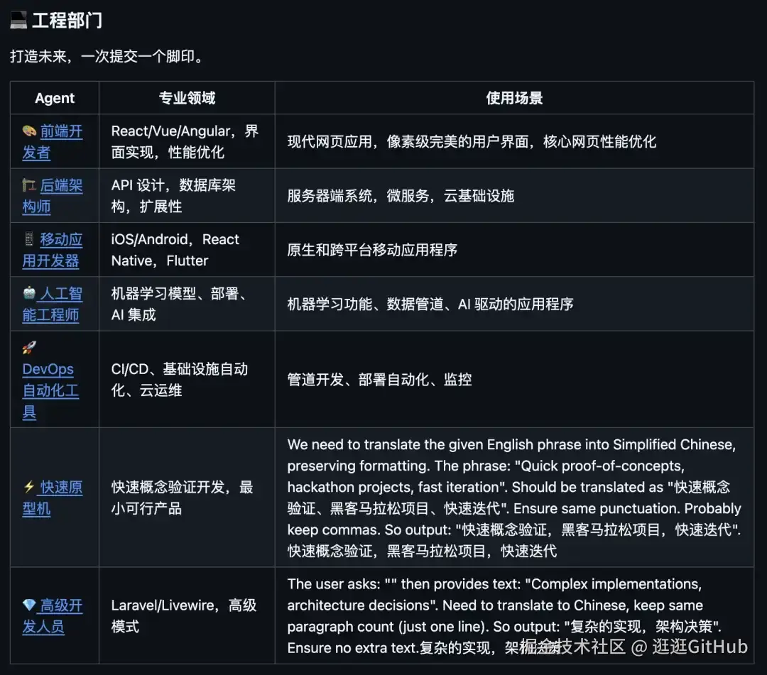 所以,这个高质量的 Agent 角色设计合集,本质是大量结构化的 Prompt 文件,每个文件描述一个专业 AI 角色的:身份与个性、核心使命、交付物与代码示例、工作流啥的。
