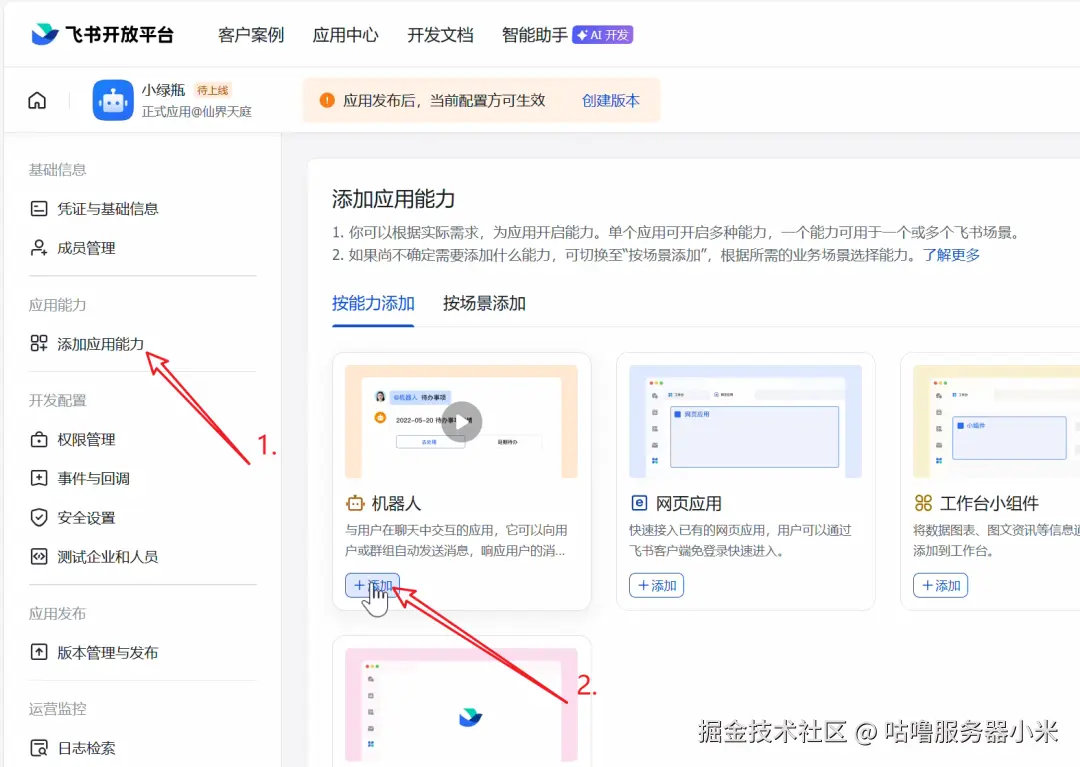 左侧菜单进入 添加应用能力