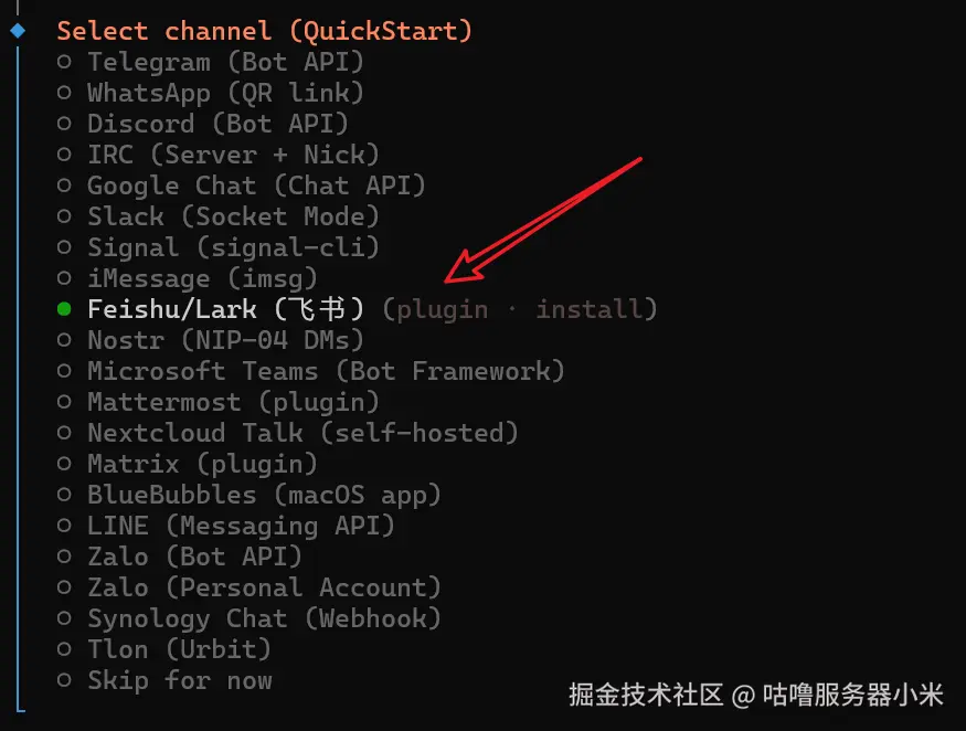 Channel 选择 Feishu / Lark