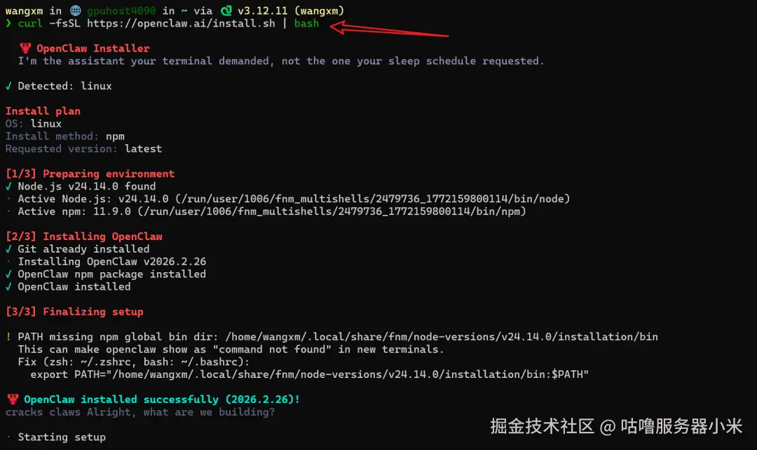 三、安装并配置 OpenClaw