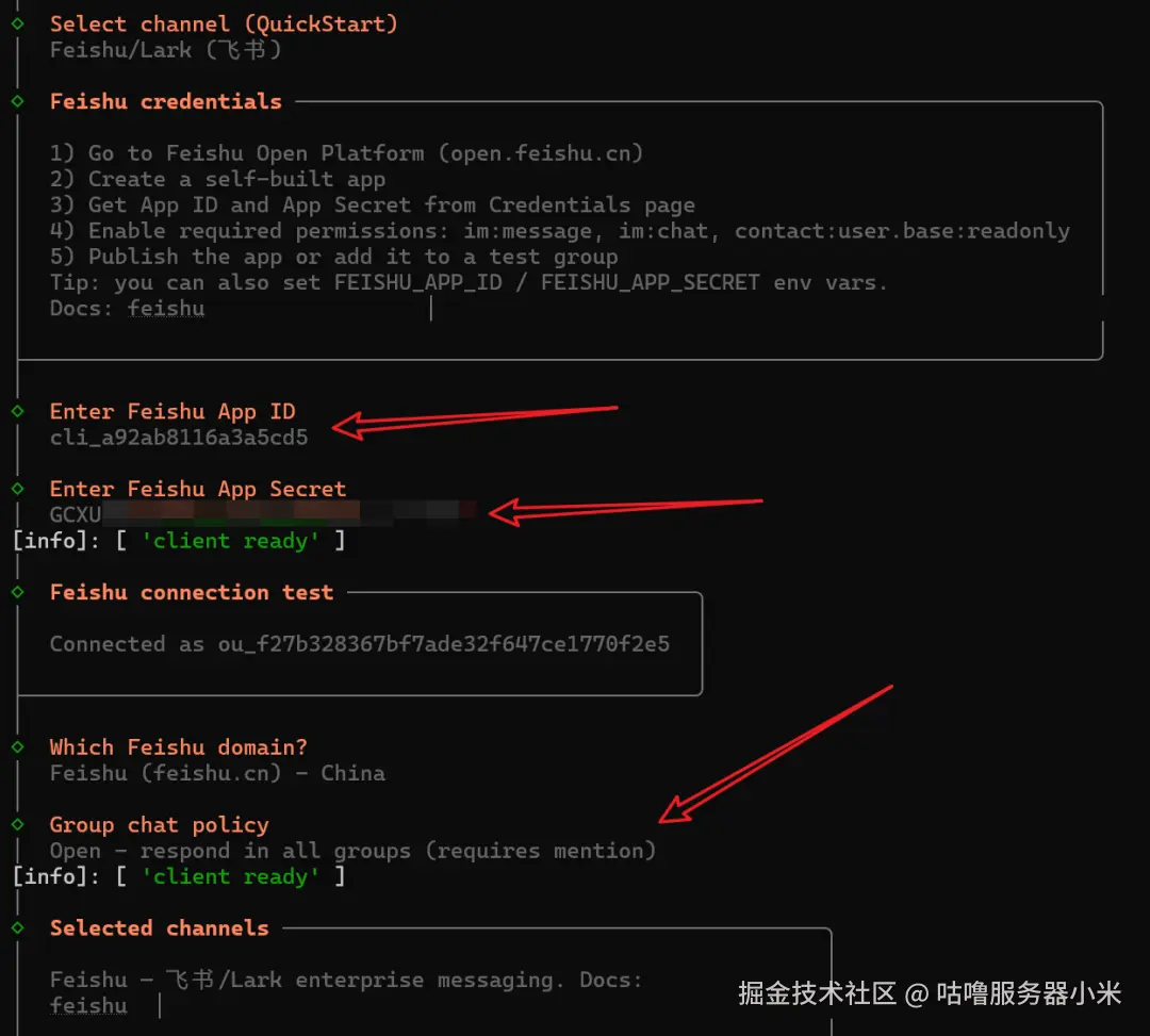 飞书侧还有一项配置,需要在接入 OpenClaw 后进行,后文说明。