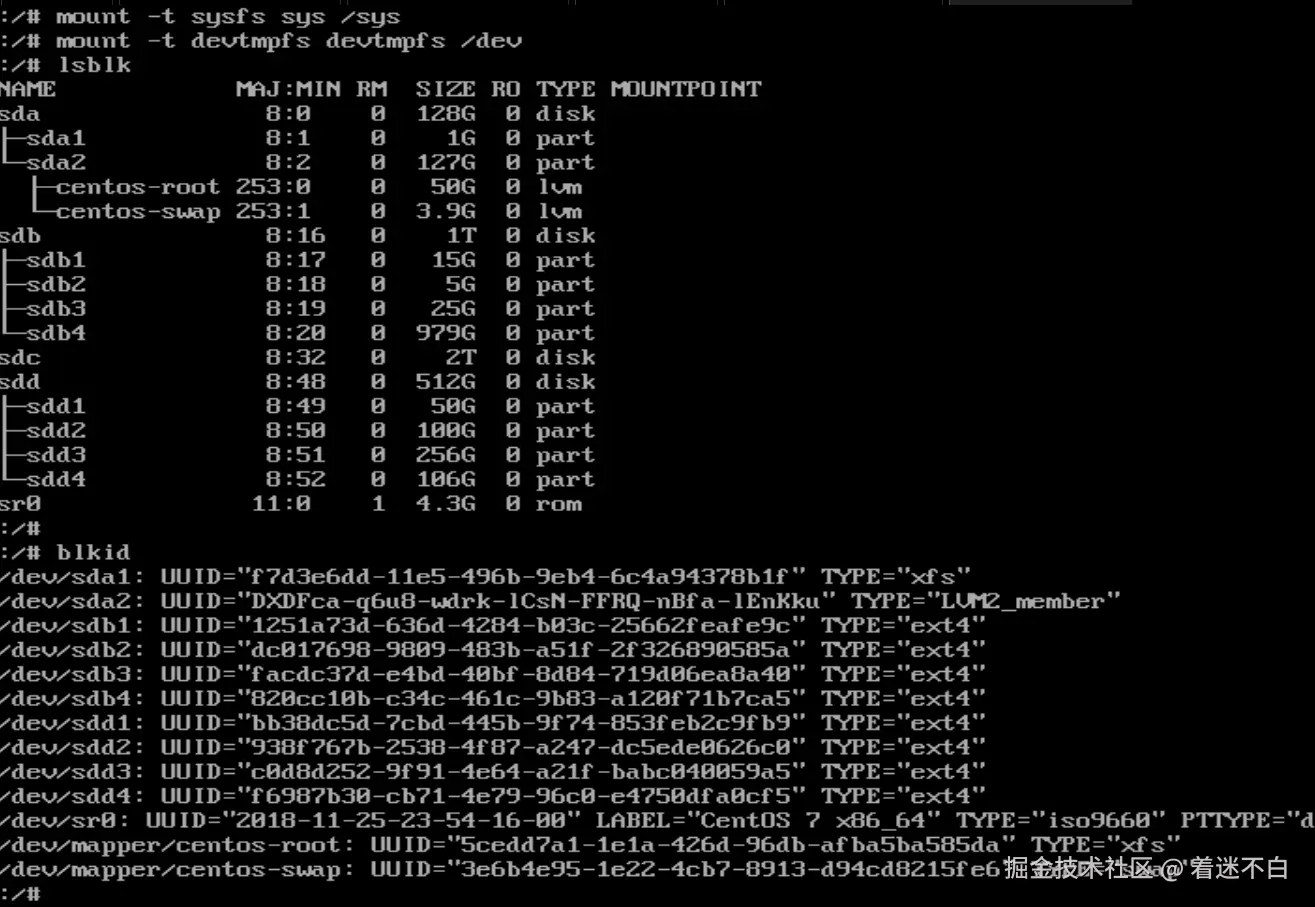 # 如果 /dev 下设备节点也缺失,再挂载 devtmpfs