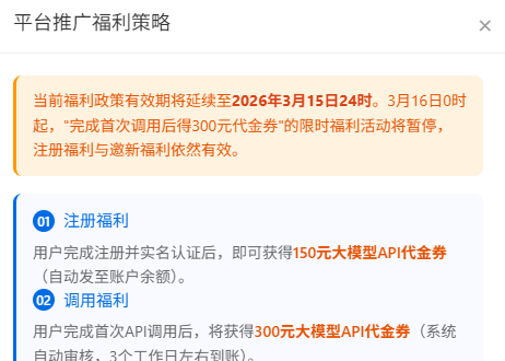 450额度,实名一部分,首次调用成功再补一部分,拿来补位模型很够用。直达链接:白山智算