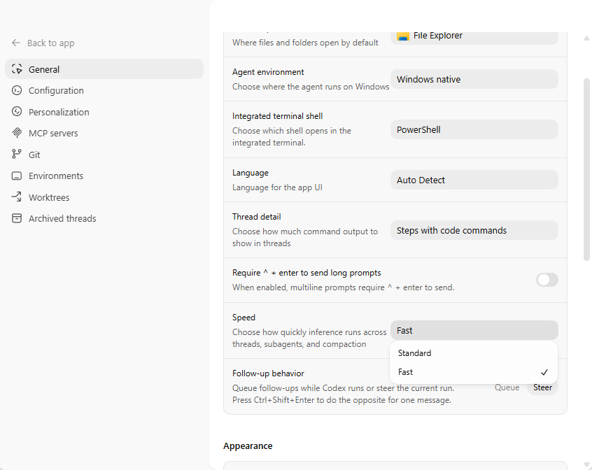 这套配置的核心价值就是快。大多数日常任务,比如看代码、改代码、补命令、顺着报错继续查,真正拖效率的不是不会做,而是每一轮都慢半拍。GPT 5.4 + fast 基本就是我现在的主力档位。