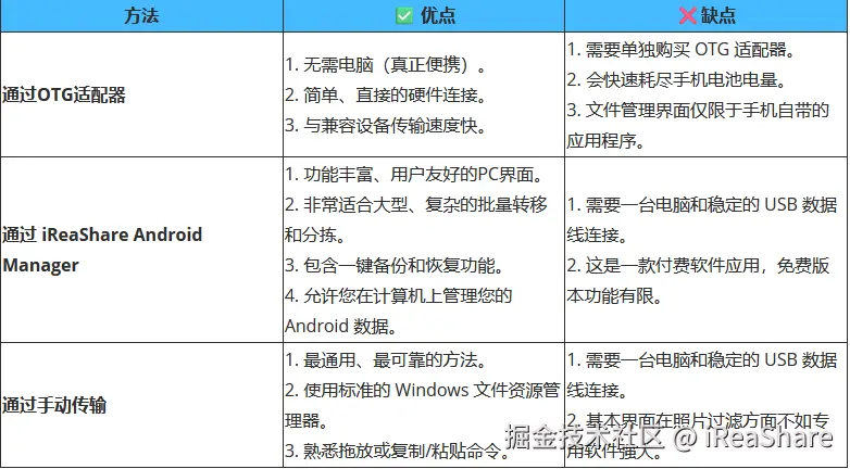现在您已经学会了三种将安卓手机照片传输到U盘的有效方法。您甚至可以使用iReaShare Android Manager在电脑上管理照片。有了这款软件,无论您是想传输、备份、恢复还是整理文件,都能轻松完成。