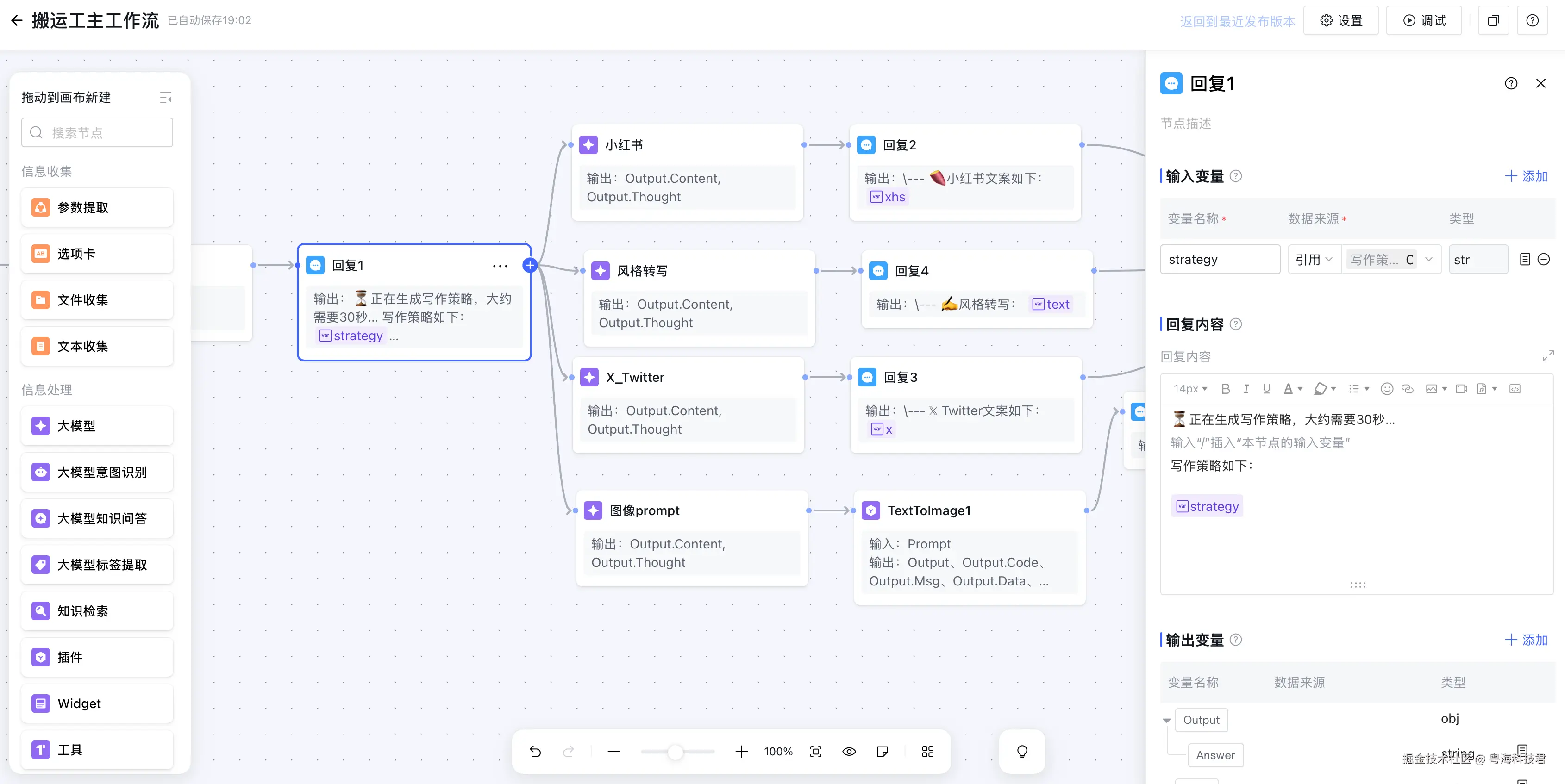 b. 分别连接到小红书、Twitter、风格转写、图像生成节点