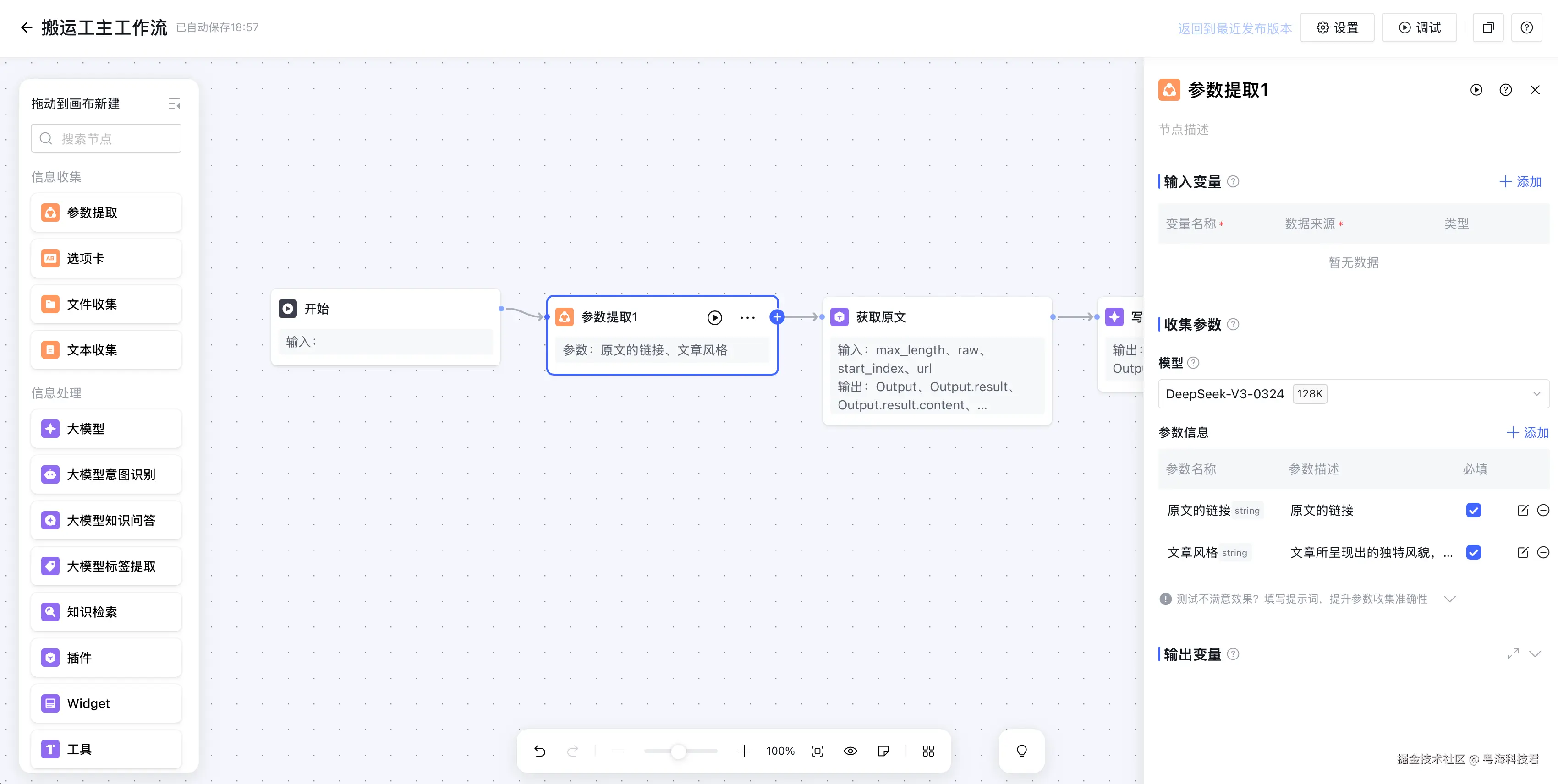 功能说明:系统首先通过参数提取器收集两个关键信息: