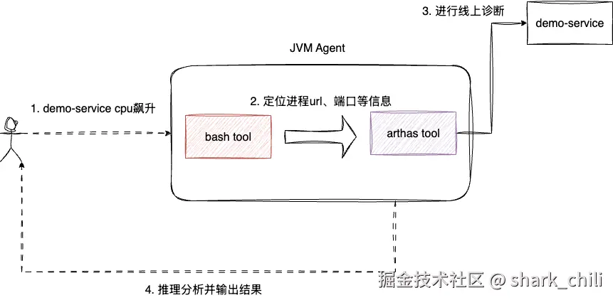 对此,笔者将通过一个简单的JVM监控诊断助手的案例,演示如何将沉淀的个人经验高度抽象封装为可复用的agent,希望对你有帮助。
