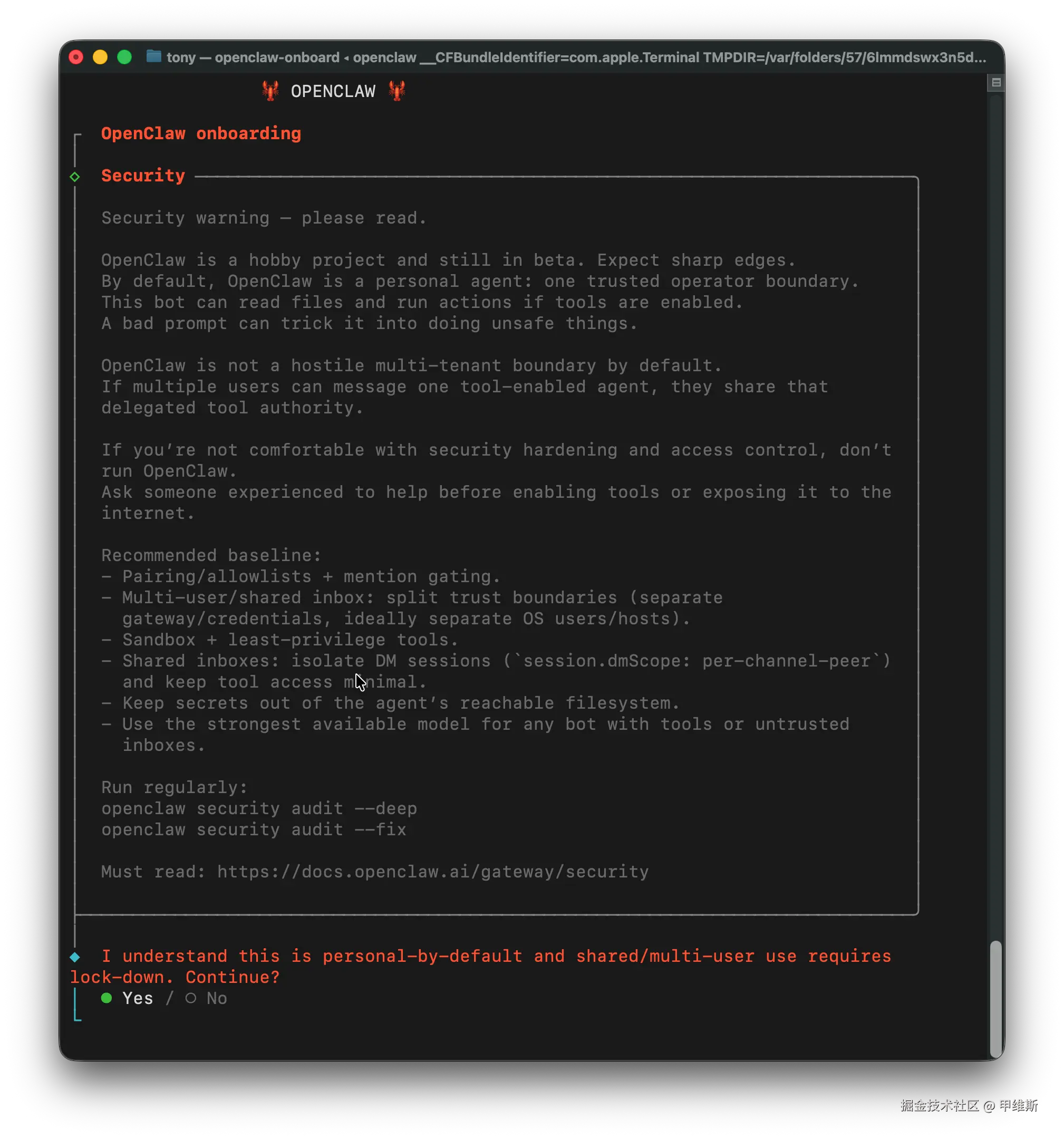 输入命令回车之后,会有安全提醒: