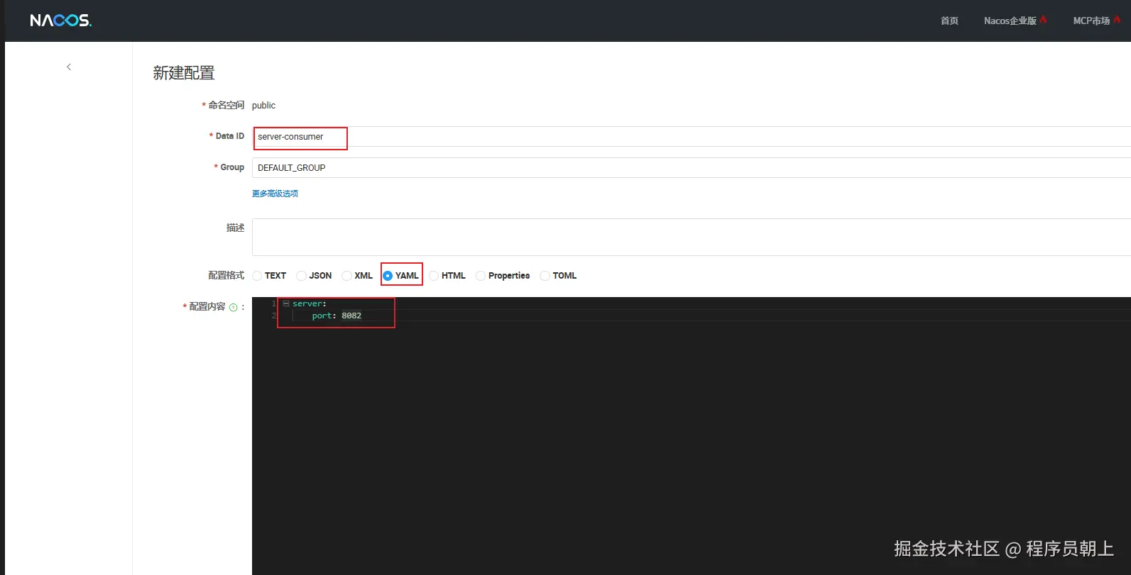 - 在nacos上新增配置文件:server-consumer.yml(该名称必须与服务名 server-consumer 一致)