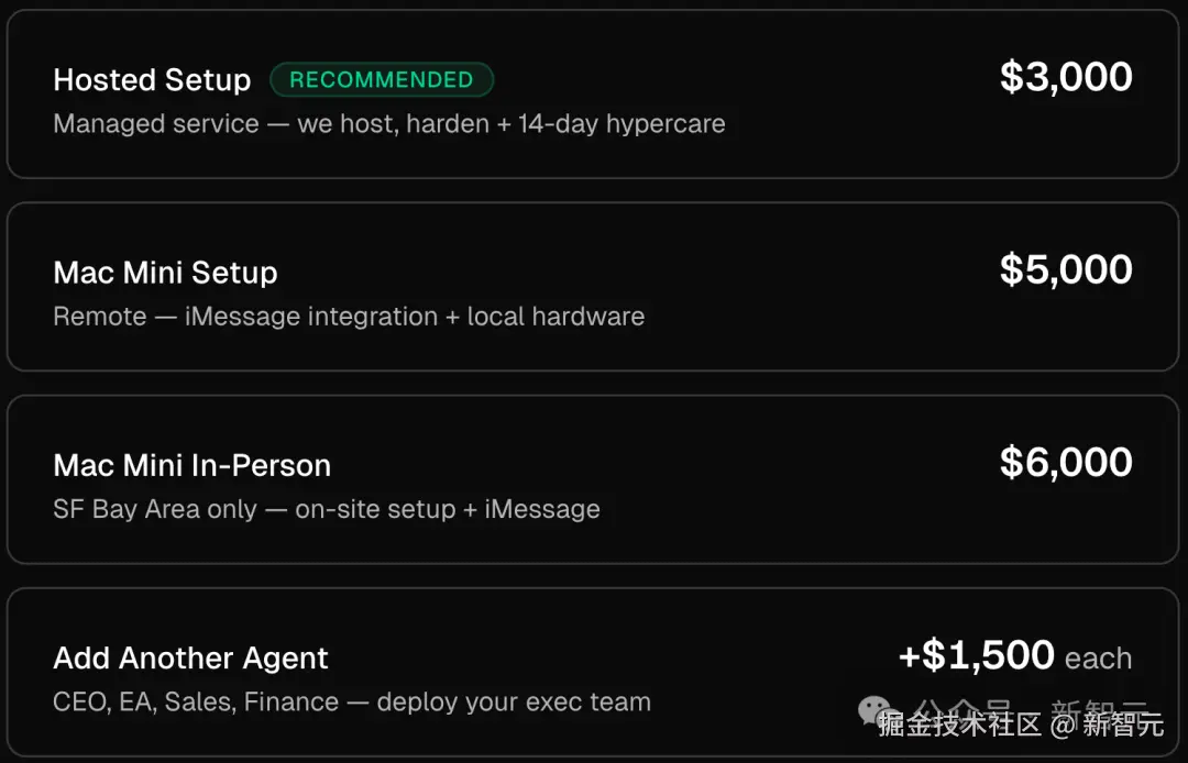 - 上门部署(仅限旧金山): 技术人员亲赴现场完成安装与 iMessage 集成,单次收费 6,000 美元。