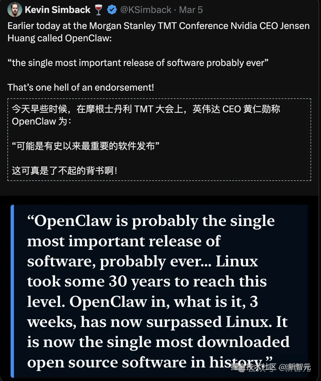 最近,黄仁勋表示:OpenClaw 可能是历史上最重要的软件发布。