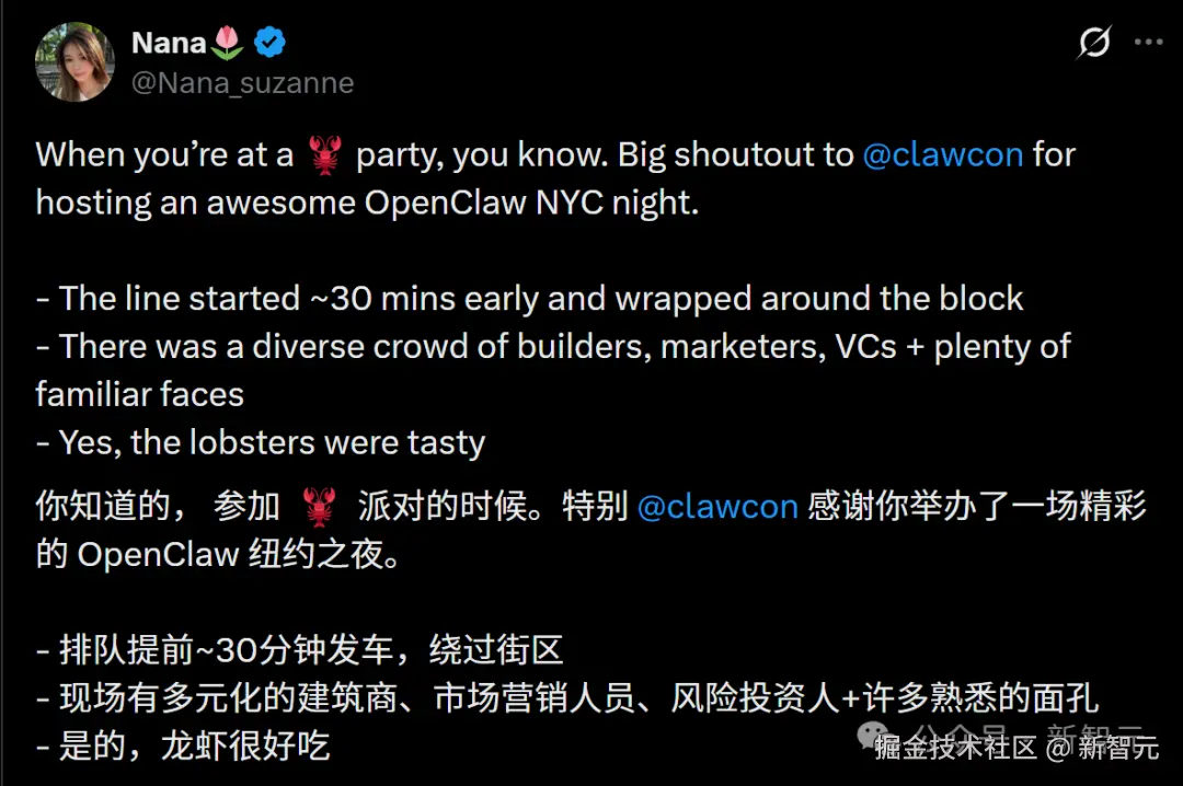 财富 500 强顾问、上过 TIME 百大 AI 人物的 Allie K. Miller 直击昨晚纽约 OpenClaw 现场聚会之后,为我们总结了龙虾教徒们的疯狂现状。