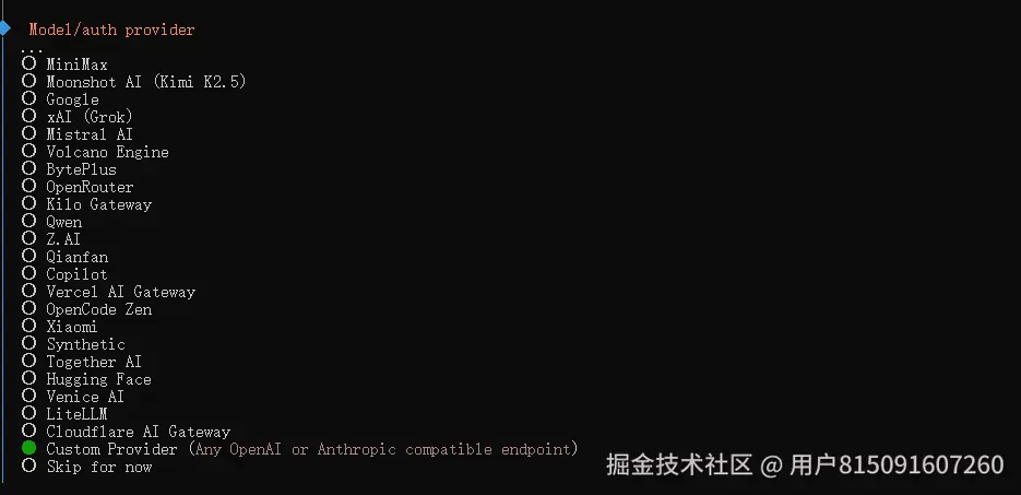openai-completions:OpenAI兼容接口(最常用)anthropic-messages:Anthropic Claude接口google-generative-ai:Google Gemini接口