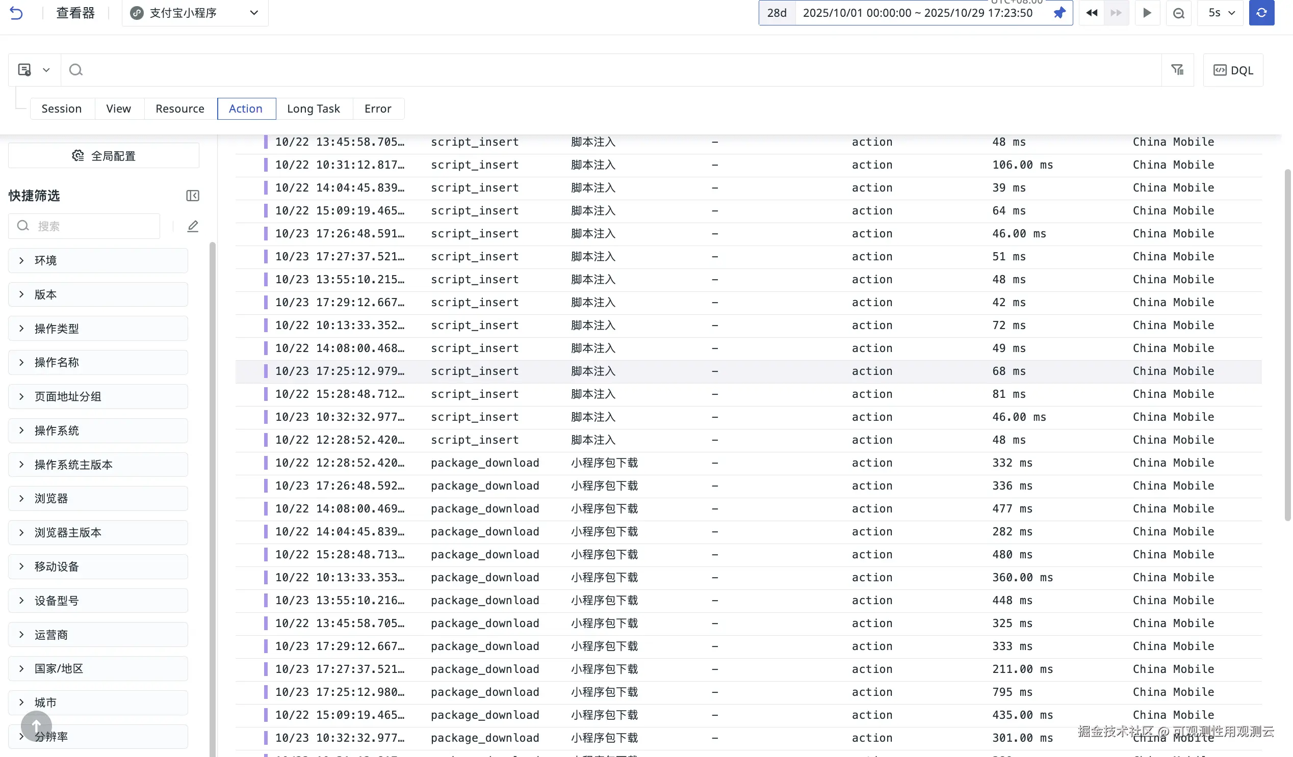 支付宝小程序的用户对体验的容忍度极低——页面加载慢 1 秒可能导致 5% 的用户流失,支付流程卡顿可能直接引发投诉。但用户通常不会详细描述问题(如“首屏渲染慢是因为图片未压缩”),而是给出模糊反馈(“用不了”“太卡了”)。若无可观测能力,开发者只能通过“猜测+灰度测试”被动优化,无法精准识别影响用户体验的关键节点。