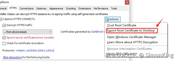默认情况下,Fiddler只能抓取HTTP请求。要解密HTTPS流量,必须进行以下配置: