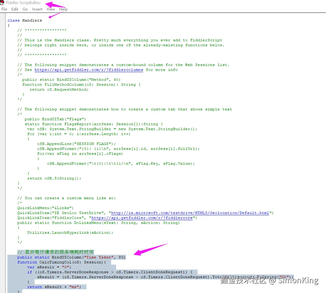 在Fiddler页面,通过快捷键Ctrl+R,呼出Fiddler ScriptEditor,在class Handlers下增加上面的代码块即可。