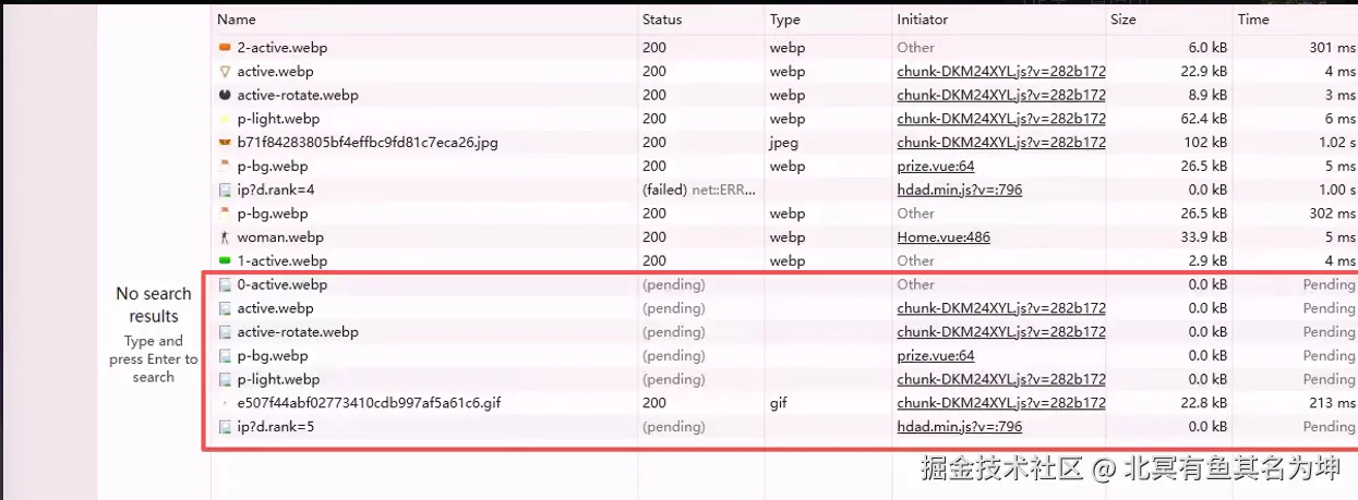 排除路径与代理后,我点开了一个长时间 pending 的图片,查看 Timing: