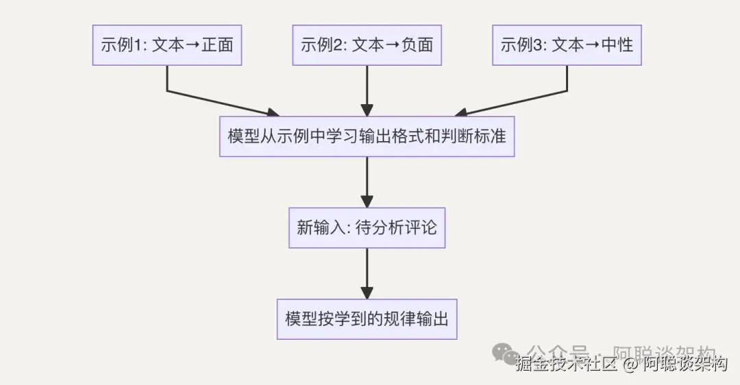 Few-Shot 是”给几个例子”的意思。你给模型展示几个”输入→输出”的例子,模型就能理解你期望的格式和风格,然后对新输入产生类似的输出。