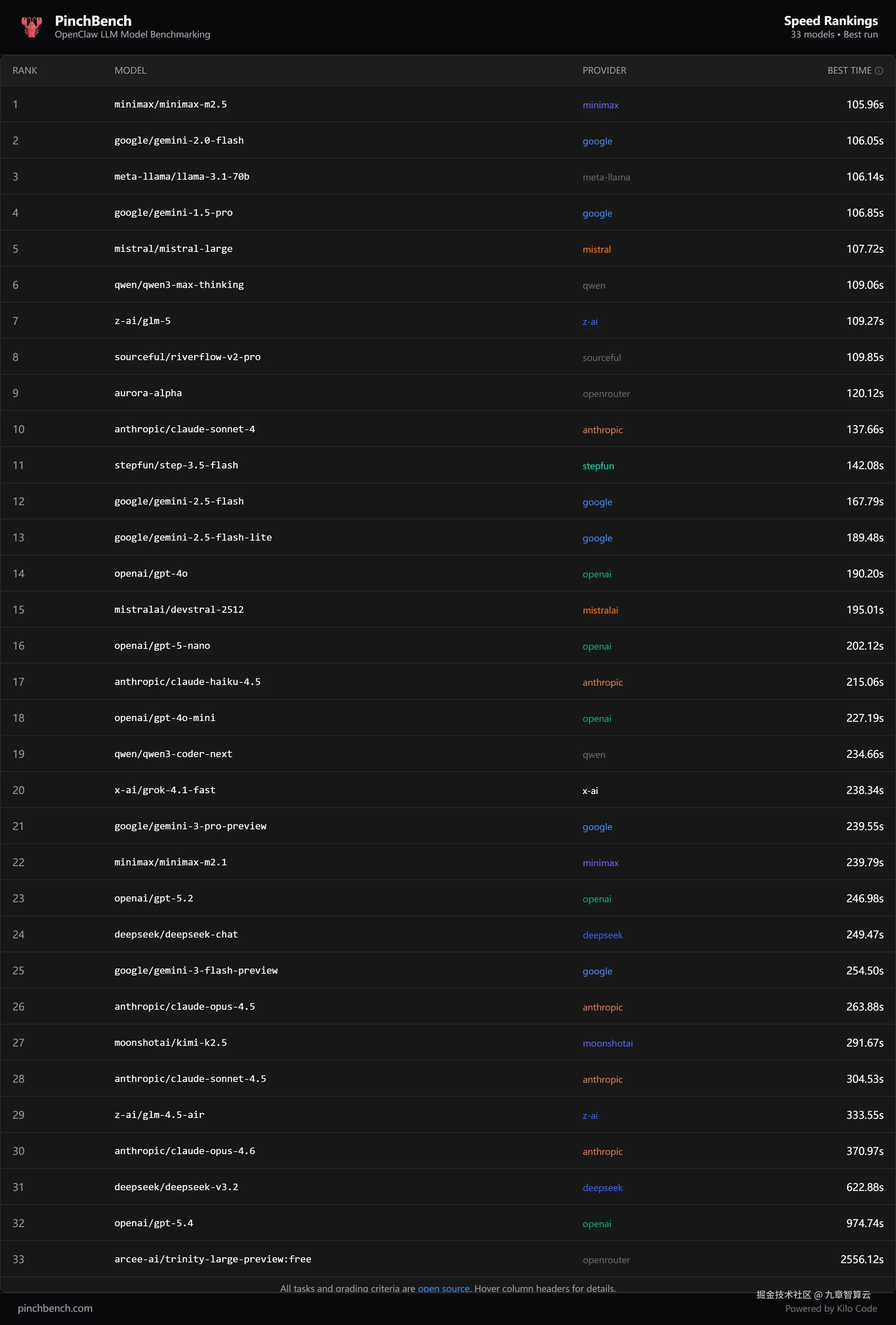 从干活的速度来看,Minimax赢了。虽然只比第二名 Gemini 2.0 Flash 只快了 0.09 秒。