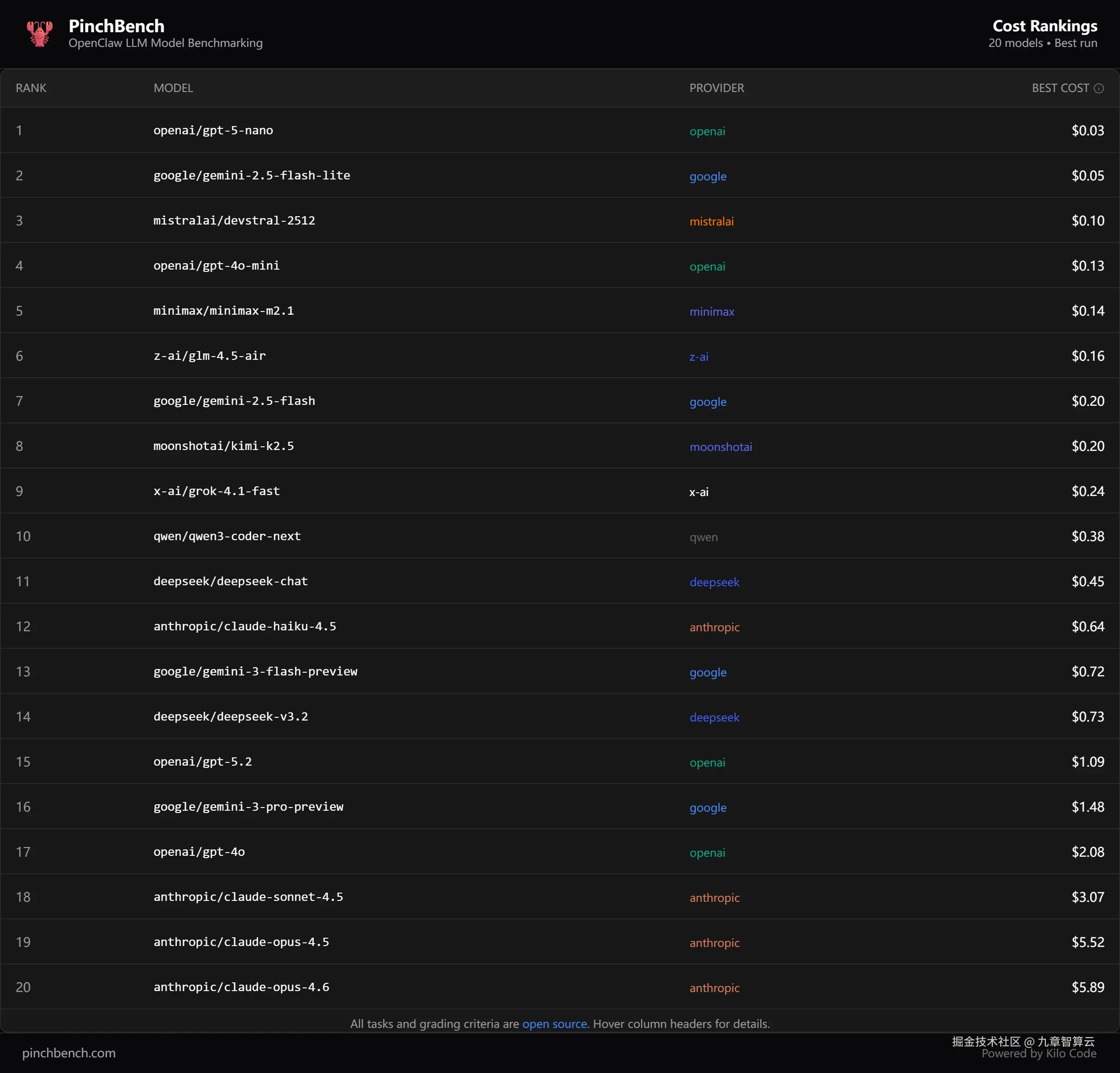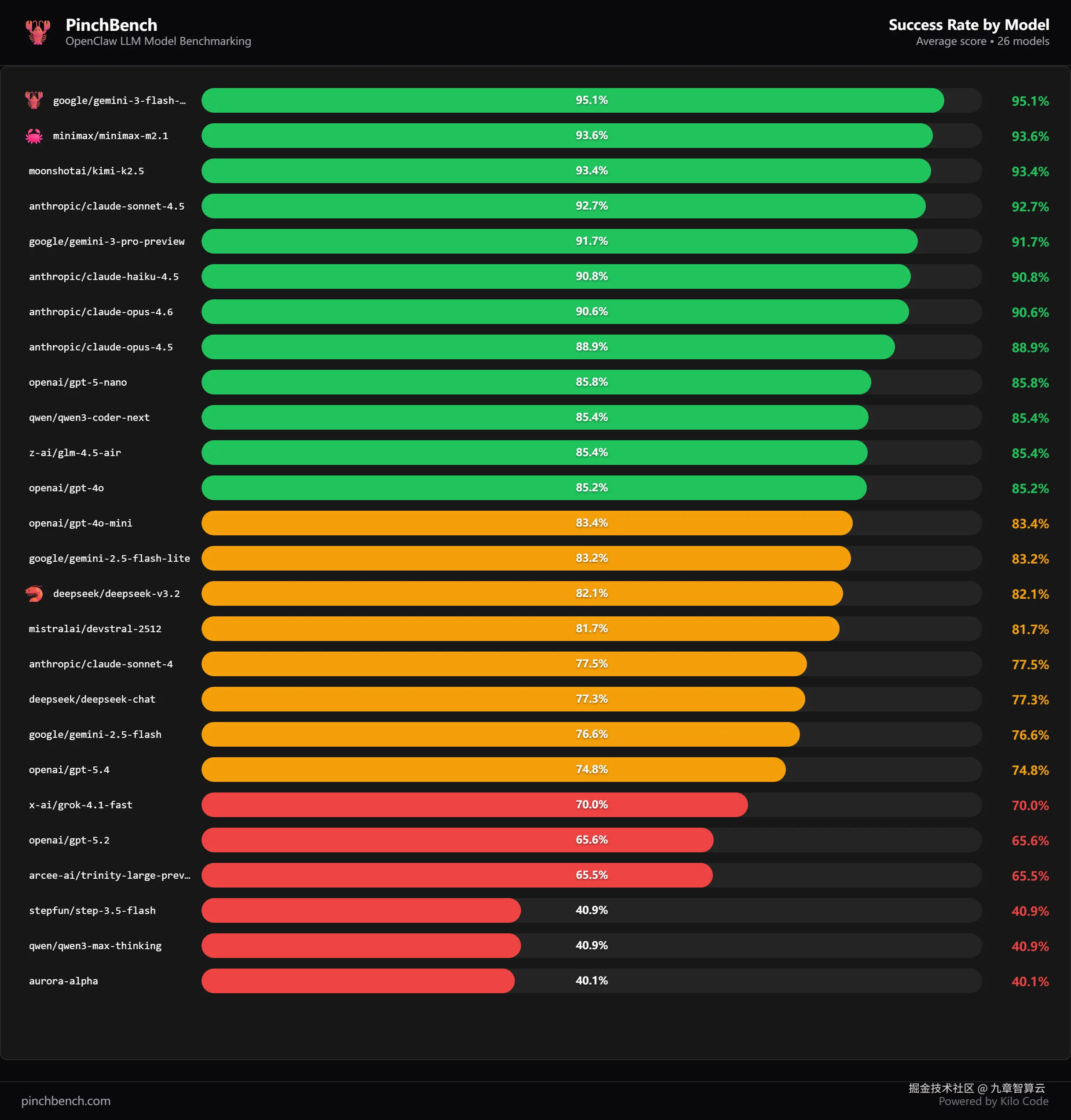 PinchBench 一口气测了 32 款主流大模型,从成功率、速度、费用三个维度,看看哪个模型最适合养龙虾。