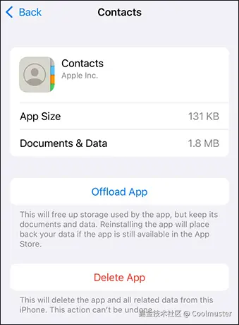步骤 5. 点击“删除应用”以删除“联系人”应用及其数据。