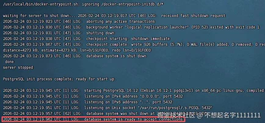 PostgreSQL 容器内部运行用户是 UID 999,数据目录必须完全归它控制。如果你不设置这个权限,容器启动时会直接报错: