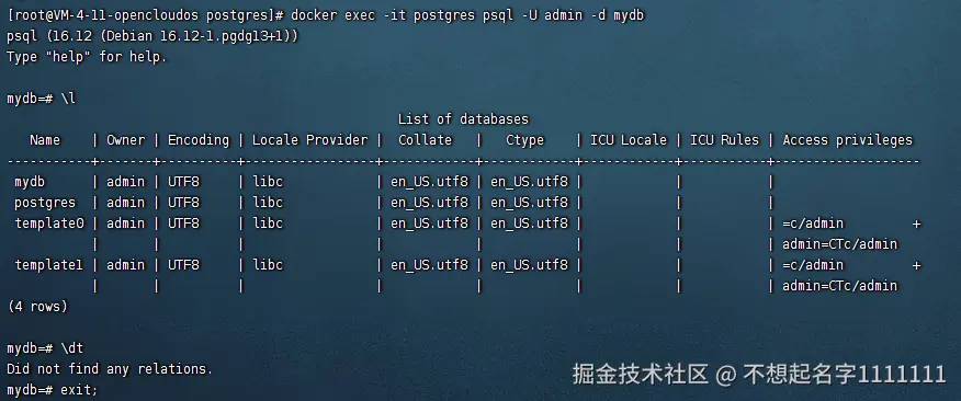 进入 psql 后,执行以下命令: