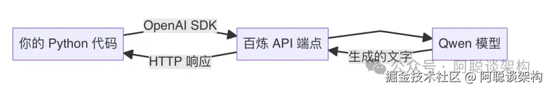 阿里云百炼提供通义千问(Qwen)系列模型,并且提供了 OpenAI 兼容模式。这意味着你可以直接使用业界最广泛的 OpenAI Python SDK,只需改两个参数就能接入百炼,无需学习新的 SDK。