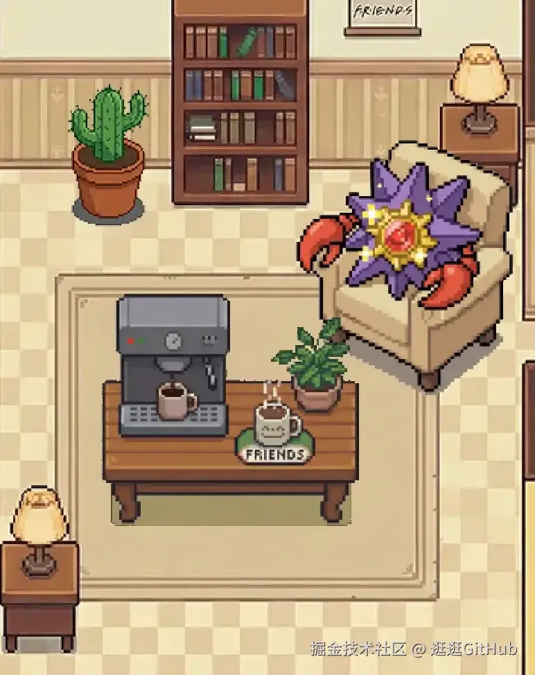 它能将 AI 在后台运行的隐形工作状态,具象化地变成一个在温馨小房间里打工、休息、甚至会遇到 Bug 的像素小人。