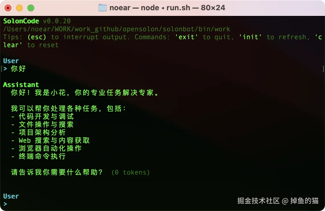 SolonCode 是由杭州无耳科技有限公司,基于 Java 8 + Solon AI 开发的 “Claude Code” 国产开源实现版本。它不仅是一个 AI 终端智能助手(帮你查资料、写报告、发邮件,生成图片、视频,陪你聊天等...),更是一个深度集成开发环境、帮你写代码、用浏览器测试(如果你想?也能买东西)、支持多种 AI 协议(ACP/MCP)的 全栈 AI 编程智能体。