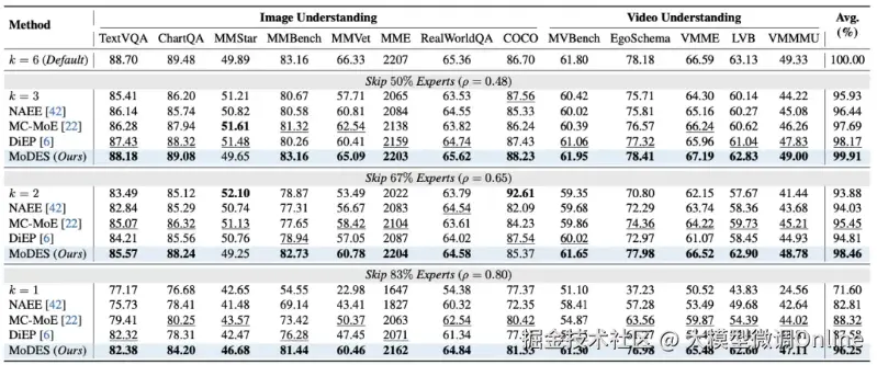 想过。但以前为纯文本模型设计的专家跳过方法,放到多模态模型上就失灵了——跳过比例一高,性能直接崩盘。